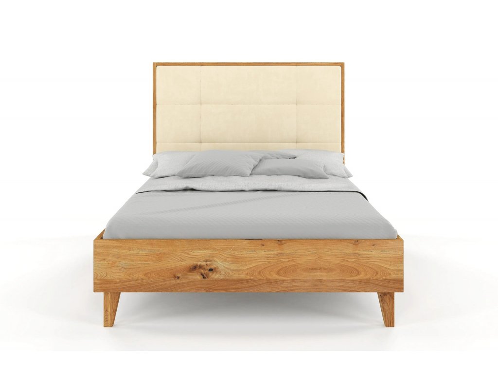 Gepolstertes Doppelbett aus massivem Buchen - oder Eichenholz. Es zeichnet sich aus durch: