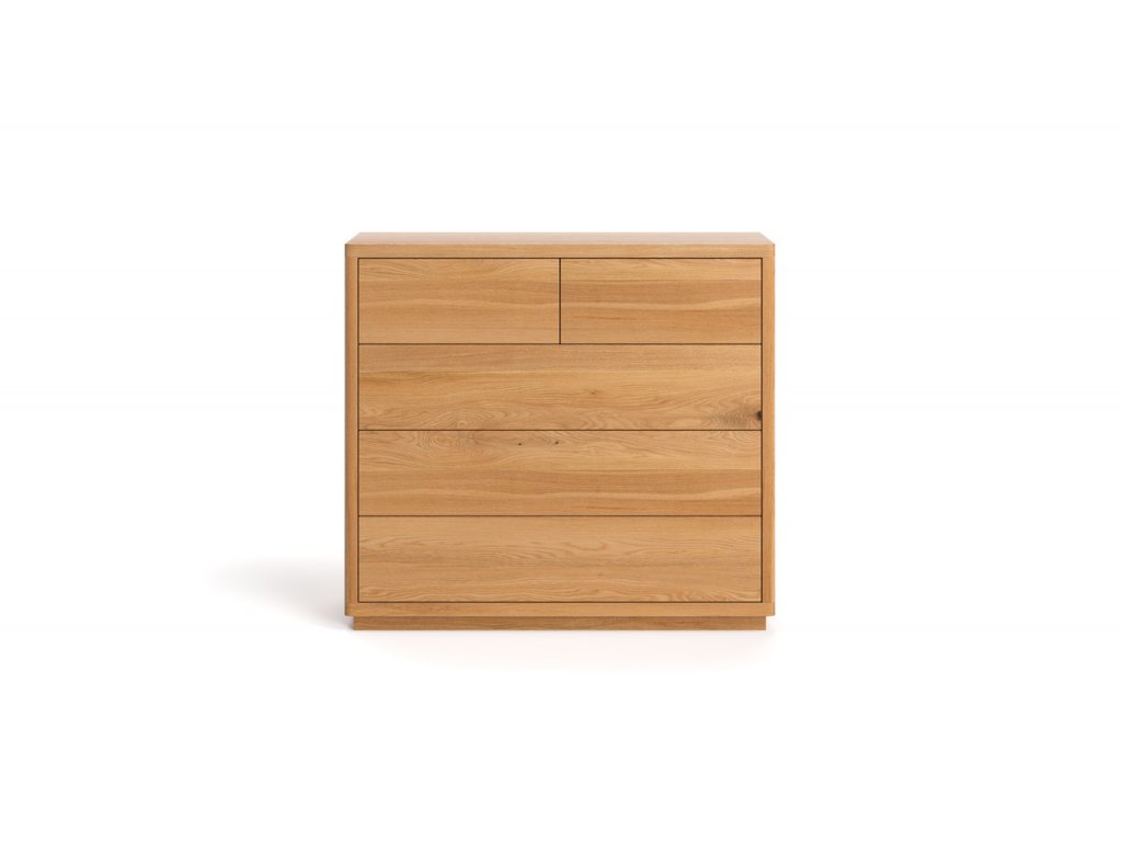 Gebäude, Möbel und einst auch Verkehrsmittel. Das alles verdanken wir dem Eichenholz, das aufgrund seiner Beständigkeit für verschiedene Zwecke genutzt wurde und wird. Im Fall der Soma-Kommode sorgt die Eiche für ein attraktives Aussehen und die Langlebigkeit der Kommode. Bei richtiger, unkomplizierter Pflege kann die Soma-Kommode auch scheinbar Unüberlebbares überstehen. Das unregelmäßige Muster des Eichenholzes kümmert sich nicht nur um ein schönes visuelles Erscheinungsbild, sondern auch um die absolute Originalität jedes Eichenprodukts.