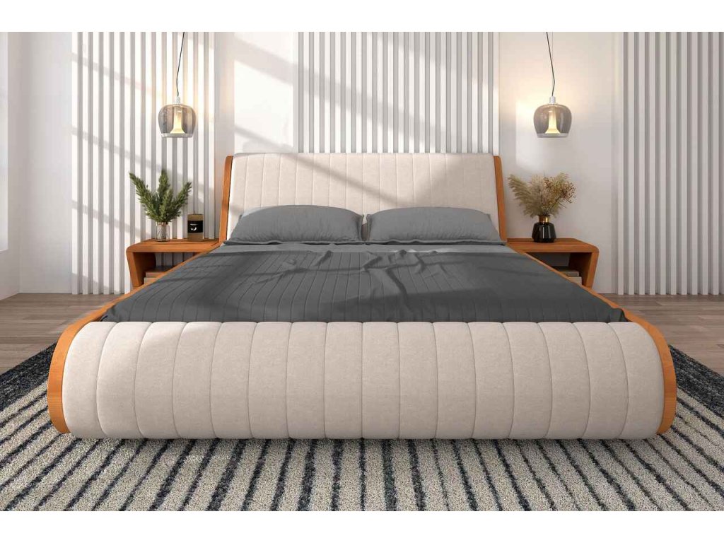 Das Design dieses Bettes verdient bewundernde Blicke. Die ungewöhnlich geschwungenen Kanten bieten nicht nur eine einzigartige Lösung für ein Doppelbett, sondern verleihen auch jedem Schlafzimmer eine Prise modernen Stils. Das leicht geneigte Kopfteil des Bettes ist ebenfalls eine bemerkenswerte visuelle Lösung, die von allen geschätzt wird, die in einem Massivholz-Doppelbett schlafen oder gerne lesen.